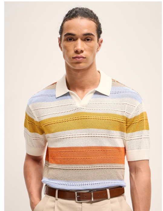 Self Design Relaxed Fit Polo Collar T-Shirt