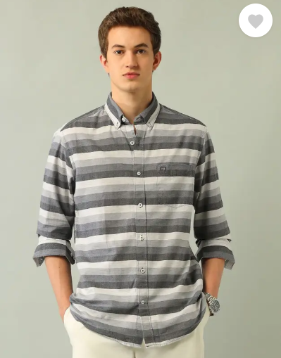 Men Slim Fit Striped Button Down Collar Casual Shirt