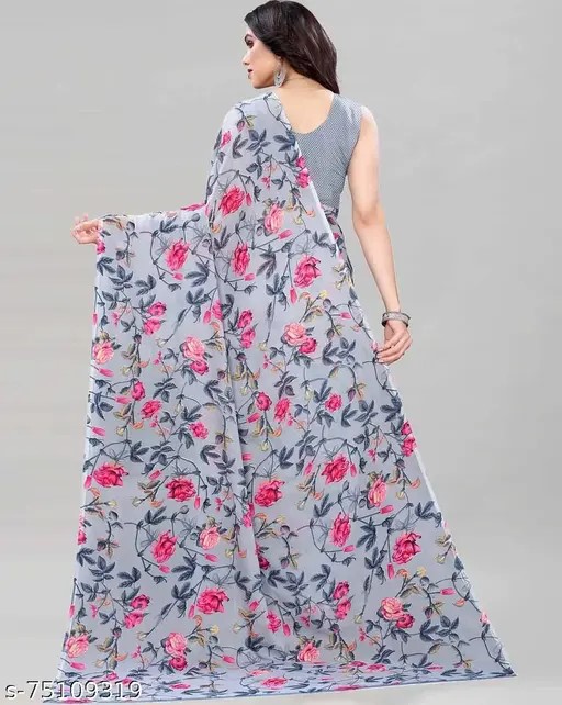 Saree Fabrics : Georgette Print. Saree Length:5.3 Meter. Blouse Fabrics:Georgette Print. Blouse Length:0.80Meter, Unstitched Saree Work:Printed. Saree Color:As Per Image. Saree Type-Daily Wear,Office Wear,Floral Prints,Flower Print.