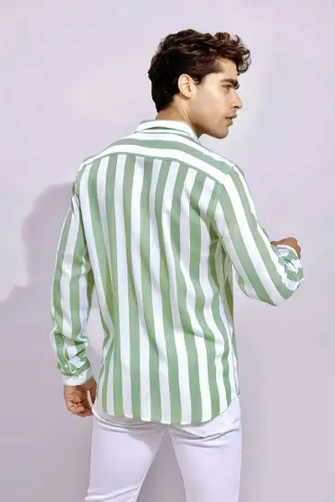 Men Striped Casual Green Shirt