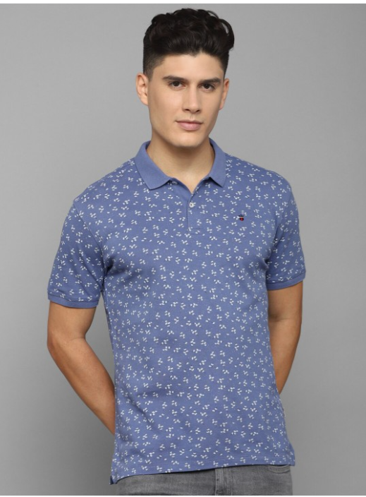 Floral Micro Ditsy Printed Polo Collar Slim Fit Pure Cotton T-shirt