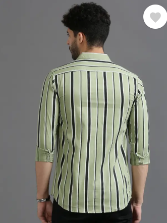 Men Regular Fit Striped Cut Away Collar Casual Shirt