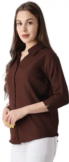 Women Solid Casual Brown Shirt