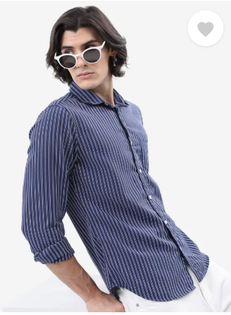 Men Slim Fit Striped Spread Collar Casual Shirt