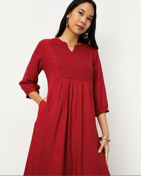 Women Smocked Straight Kurta