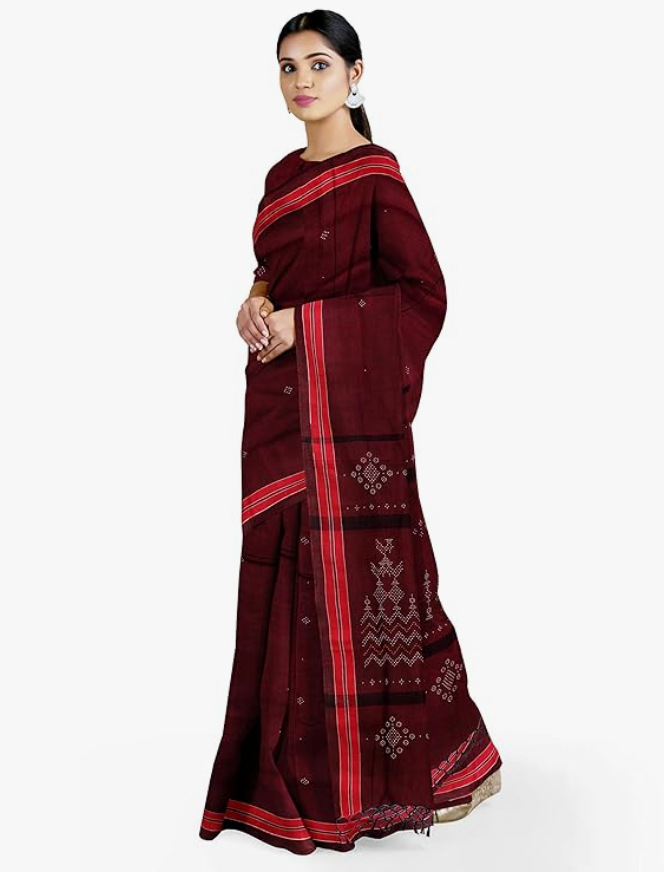 women Maroon Tangaliya Cotton Handwoven Saree