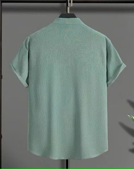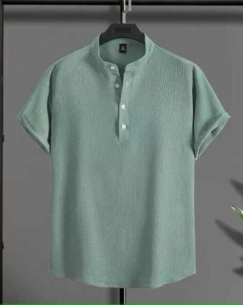 Men Knitted Loose Fit Shirt with Mandarin Collar