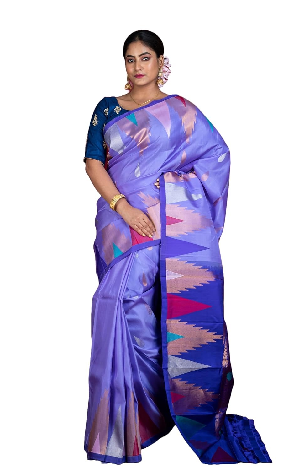 India Exclusive Mahapar Crowned Temple Border Gadwal Silk Saree