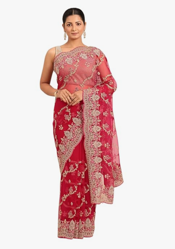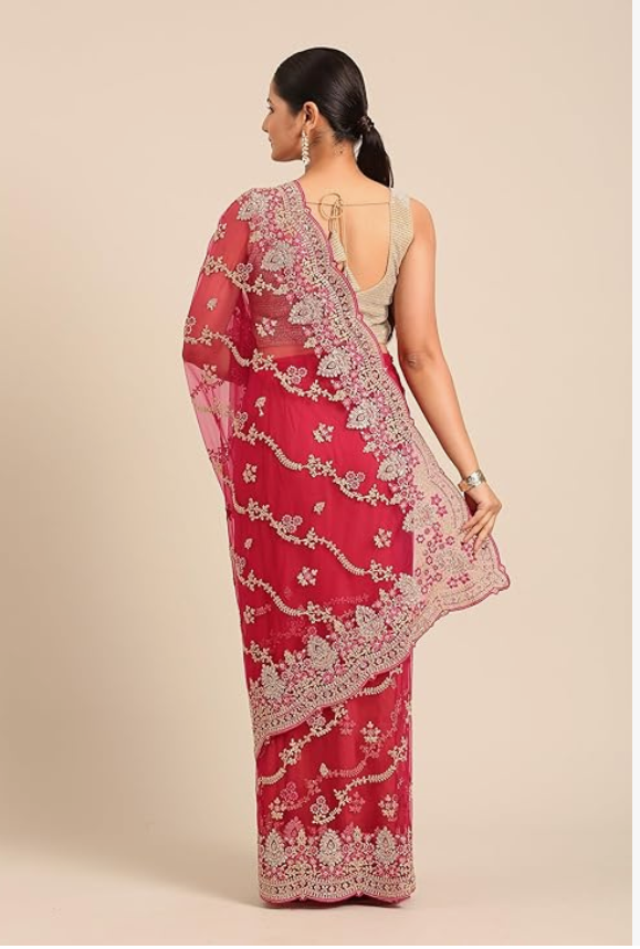Women's Net Embroidered|Stone Work| Saree
