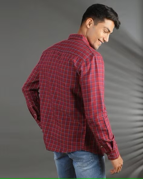 Men Tailored Fit Checkered Spread Collar Casual Shirt