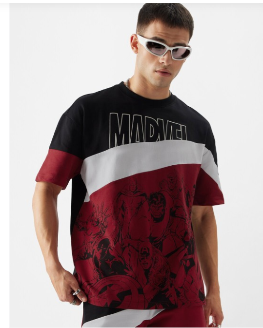 Black & Red Printed Pure Cotton Oversized T-Shirt