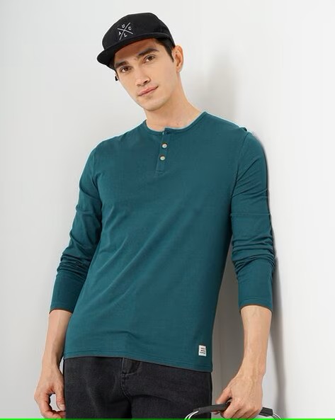 Men Slim Fit Cotton Henley T-Shirt
