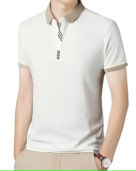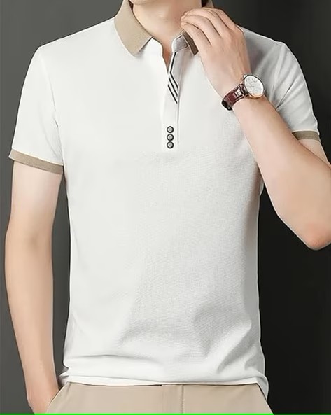 Men Regular Fit Polo T-Shirt with Contrast Collar