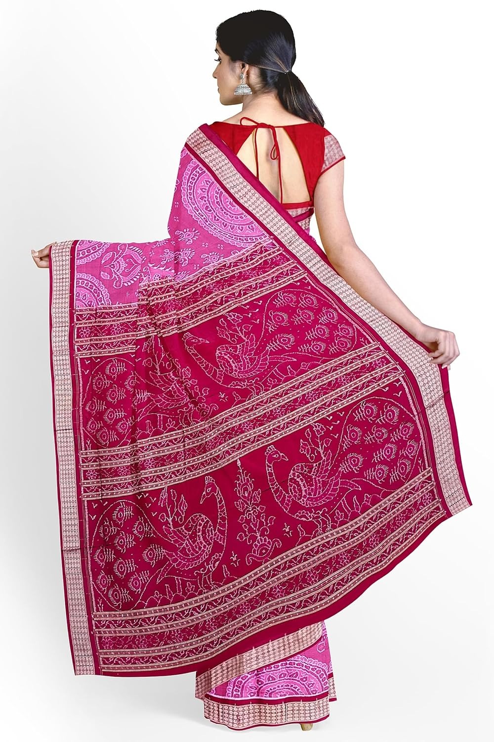 OdiKala Women Sambalpuri Silk Saree With Blouse Piece(Pink Color With Sambalpuri Traditional Design)
