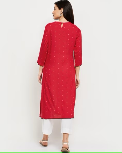 Women Embroidered Straight Kurta