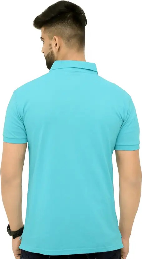 Men Solid Polo Neck Cotton Blend Blue T-Shirt