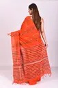 Woven Kantha Pure Cotton Saree (Orange)