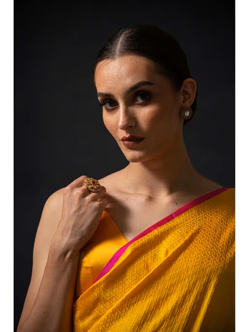 Yellow Pure Satin Tanchoi Banarsi Saree. Saree Has Jaal Design In Tanchoi Weaving. It Has A Contrast Gold Zari Weave Pallu. It'S An Artistic Tradition and A Classic Masterpiece. This Marvelous Piece Is Must for Your Trousseau Collection.