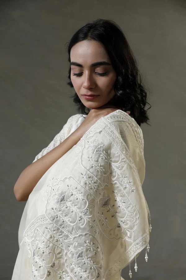 • Mughal Ornament-Inspired Thread and Embellished Pallu