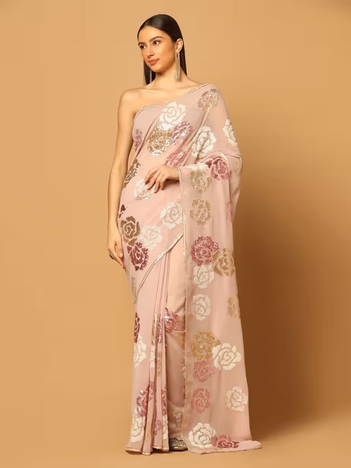 Pink Floral Sequins Embroidered Saree