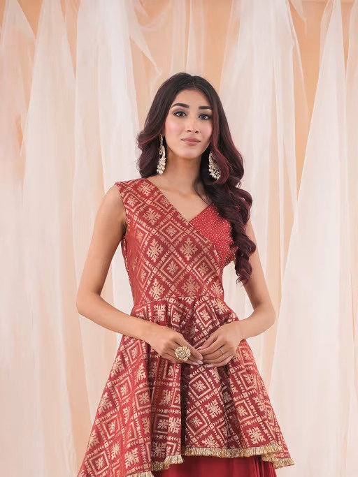 Material Used - Banarasi Brocade For Peplum Top, Crape For Lehenga. Top and Skirt with Attached Lining, Hand Embroidery Of Cut Dana Is On Top