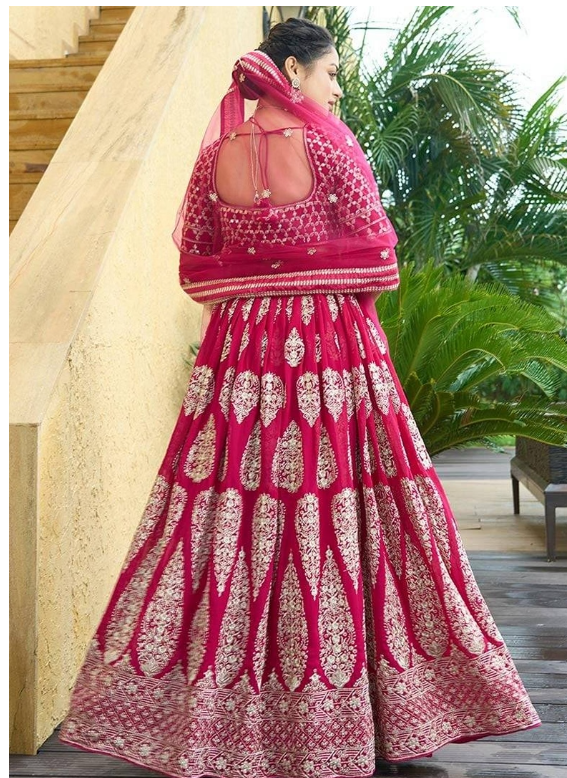 Step into elegance with this stunning Cherry Red Zari Embroidered Faux Georgette Lehenga Set, designed to turn heads at every celebration. A beautiful blend of tradition and trend, it's your perfect pick for any grand event.