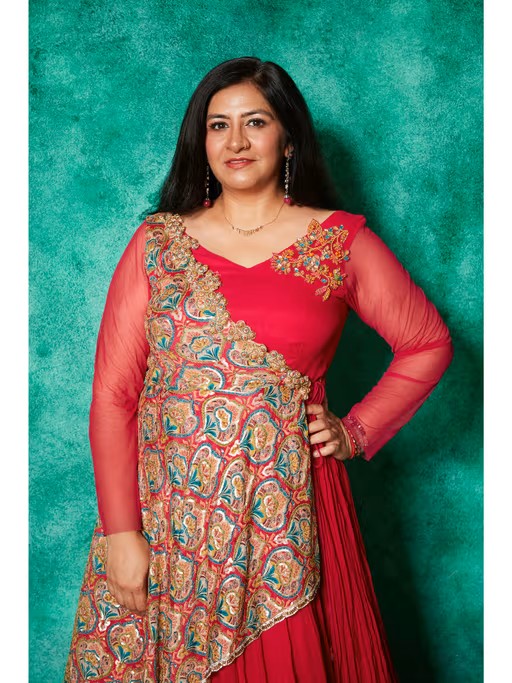 Give Yourself A Flattering Look On Special Occasions With This Saaj By Ankita Magenta Anarkali Gown With One Sided Cape. Tailored From High-Quality Fabric In A Comfortable Fit, Featuring Beads And Stones Work With Full Sleeves, V-Neck Style. This Is A Must-Have Wardrobe Piece.
