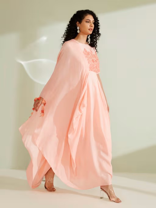 Embrace sophistication with this peach dress from 1999AD. Made from high-quality silk, the dress features half sleeves, a round neck and a sequined pattern. Style it with minimal jewellery and sandals to complete the ensemble.