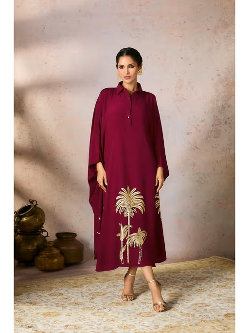 Cranberry Palm Foil Print Kaftan