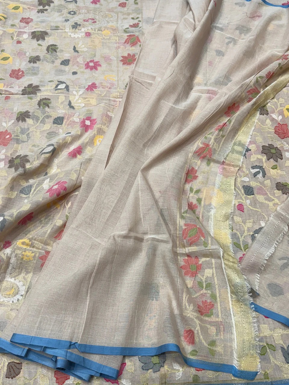 Tussar Pure Muslin Cotton Jamdani Saree