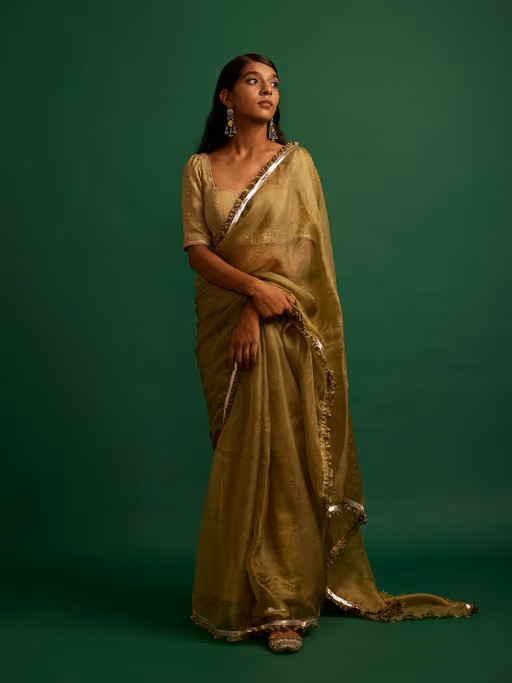 The Collection Features A Katana Kota Silk Saree In Beige, Detailed with Tissue Frill Border and Signature Marori Work.