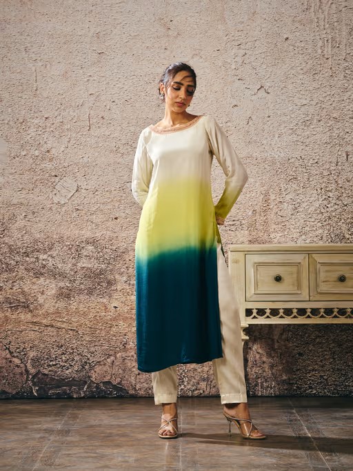 Beige Ombre Kurta with Pant (Set of 2)