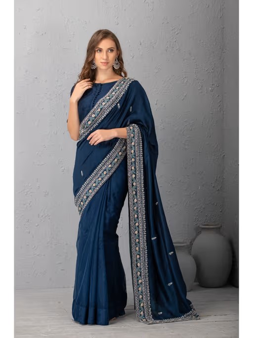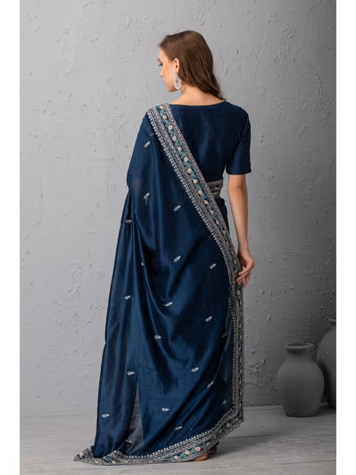 Mid Might Blue Chanderi Silk Saree