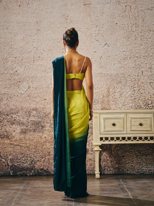 Green Ombre Pre-Draped Saree with Stitched Blouse