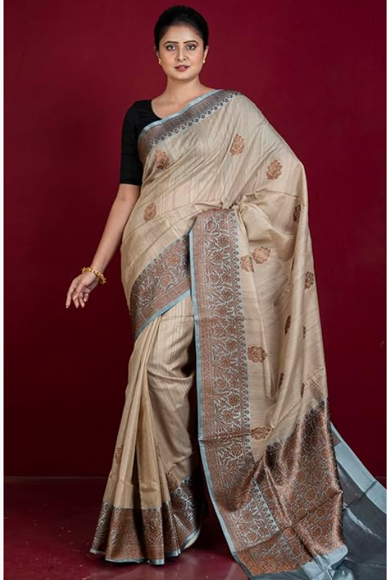 Elegant Tussar Banarasi Silk Saree with Blouse Piece for Women for Occasions and Festivals