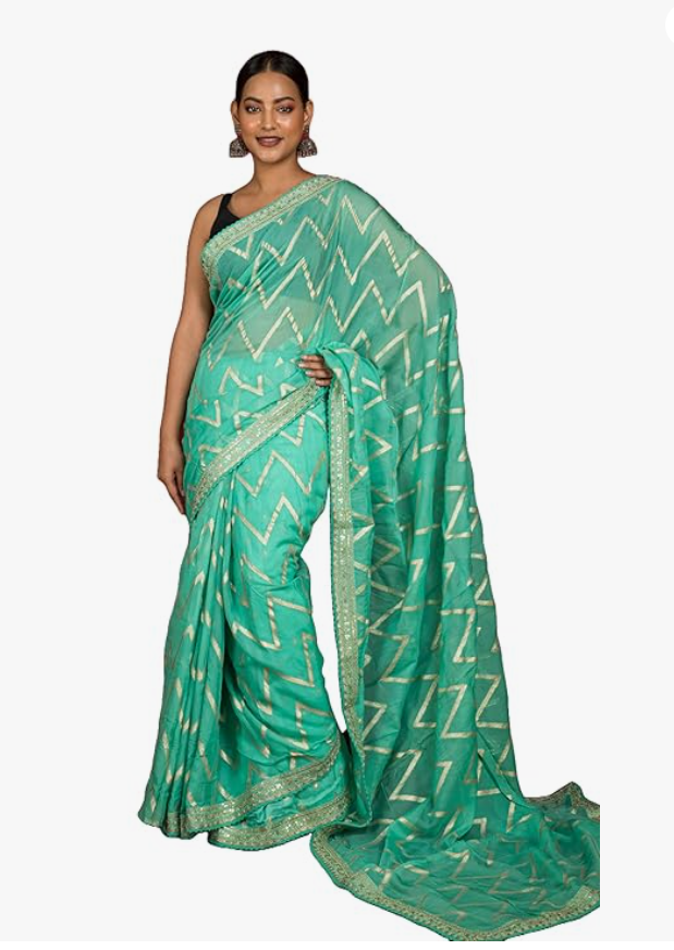 India Women's Designer Organza Georgette Zardozi Saree in Amaranth with Blouse Piece