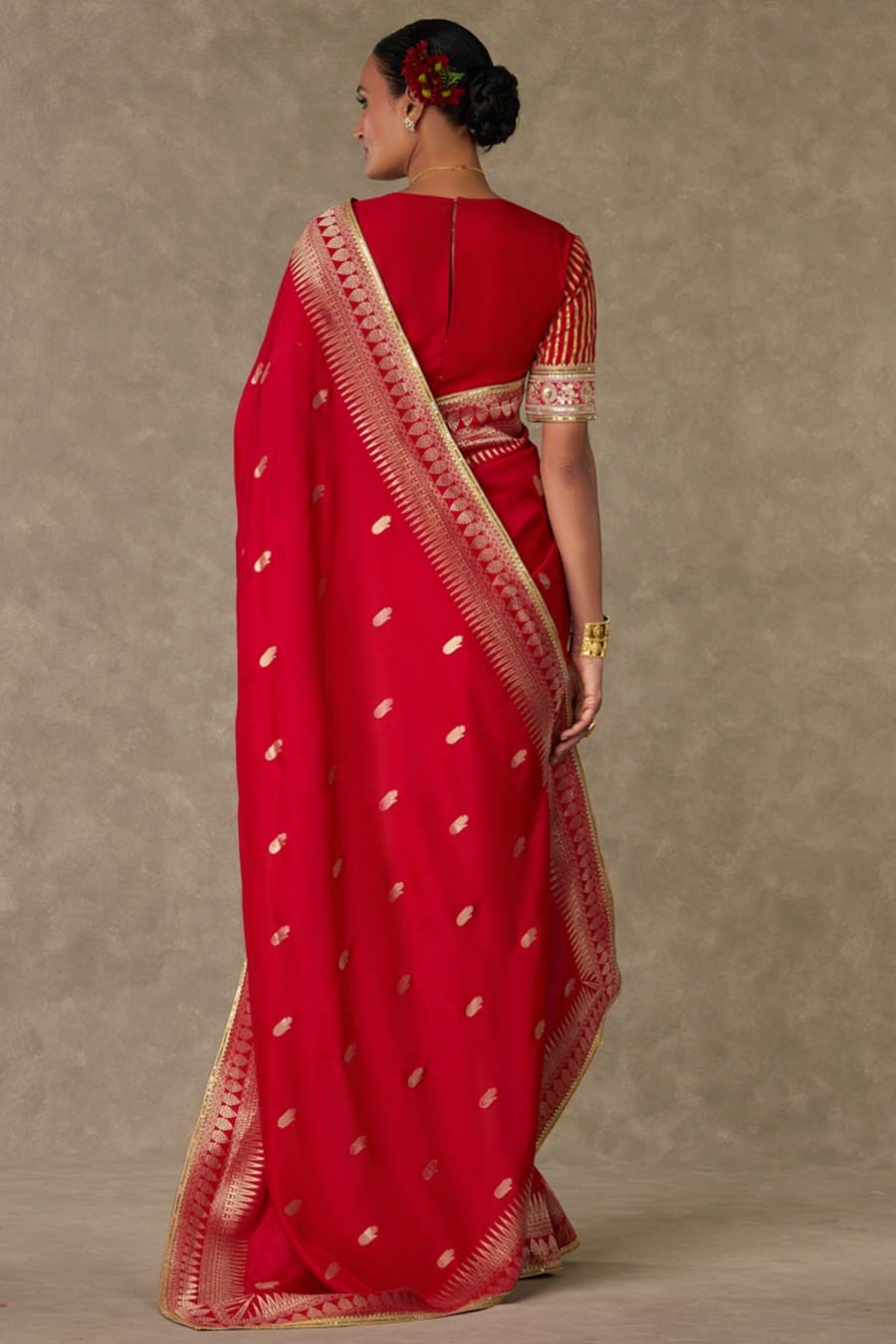 Red Haath Phool Embroidered Saree with Blouse Piece