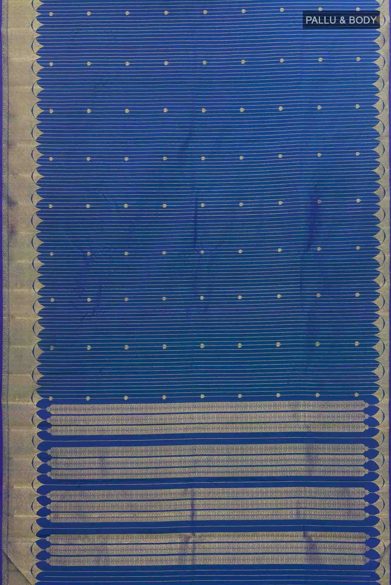 Blue Kanchipuram Silk Saree with Stripes on the body and Zari Border. Includes unstitched blouse.