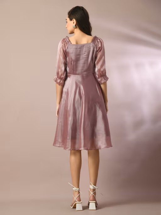 Brown Solid Square Neck Fit and Flare Party Dress