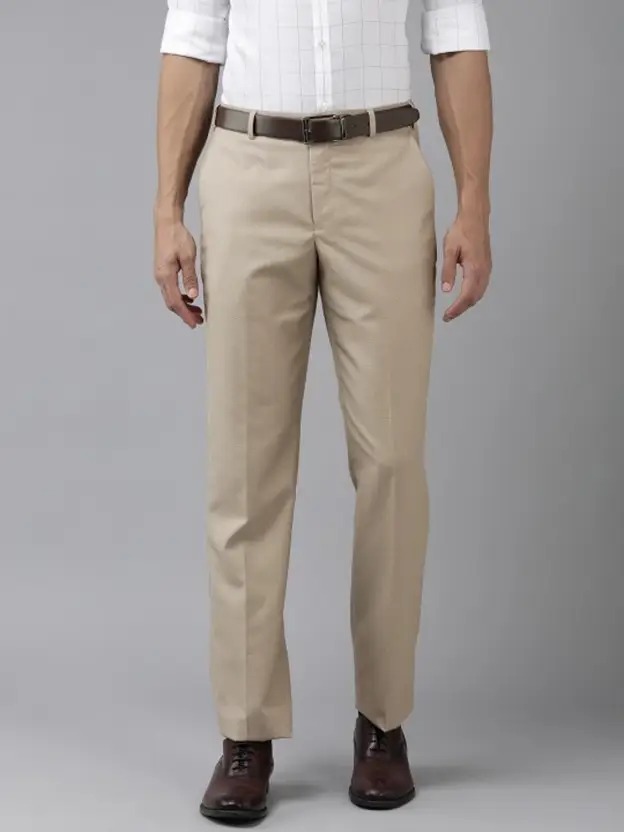 Men Regular Fit Beige Viscose Rayon Trousers