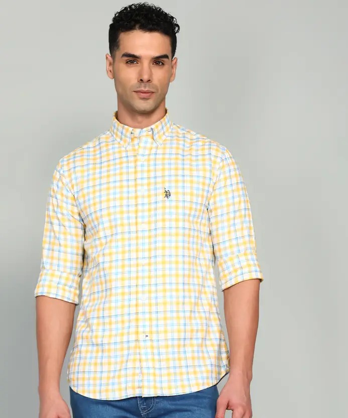 Men Slim Fit Checkered Spread Collar Formal Shirt