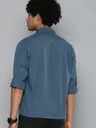 Men Slim Fit Solid Cut Away Collar Casual Shirt