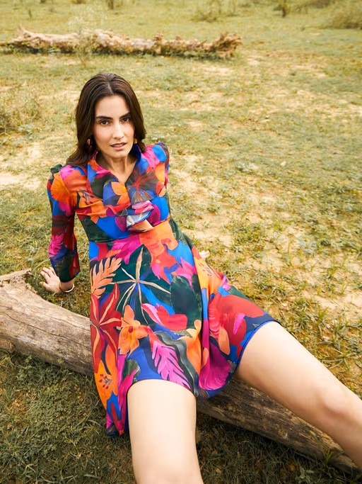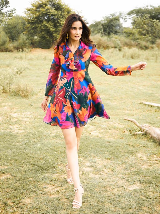 Elevate your wardrobe with this multi-color mini dress from Mabish By Sonal Jain. It is tailored from high-quality polyester fabric. This dress features full sleeves, ruffled neck, zipper closure and printed pattern. Complete the look with minimal jewellery and heels for an elegant yet chic look.