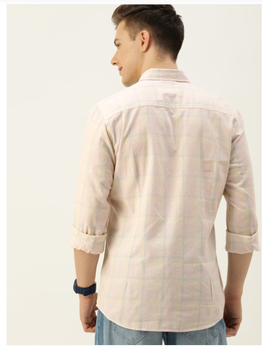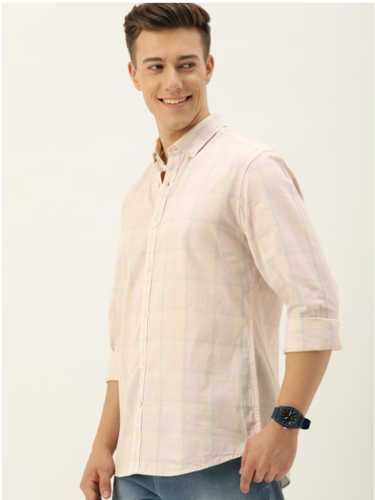 Pink other checks checked opaque Casual shirt ,has a button-down collar, button placket, long regular sleeves, curved hem