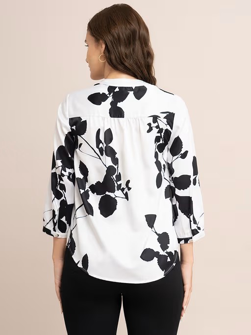 Satin Floral Print Top - White and Black