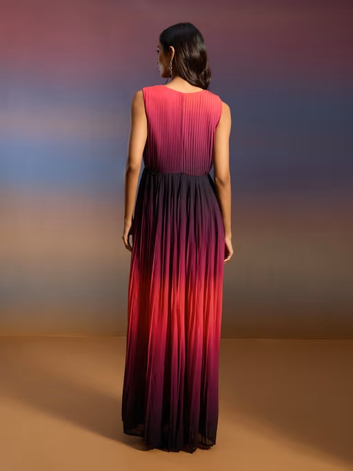 Style Note: The ombre pattern will bring in a charming touch to your party collection. Style it with rose gold heels, a clutch and hoops to go club hopping with your group - says our inhouse stylist Shimoli Kapasi.