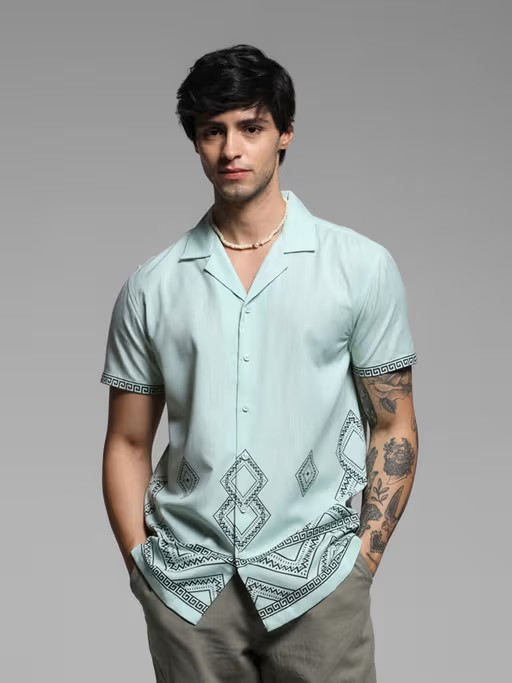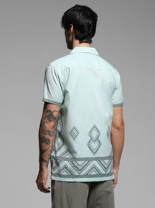 Elevate Your Look With This Captivating Green Comfort Fit Printed Casual Shirt From Jack & Jones. Made From High-Quality Polyester, This Piece Features Half Sleeves And A Collar Neck. Style It With Jeans And Shoes To Complete The Ensemble.