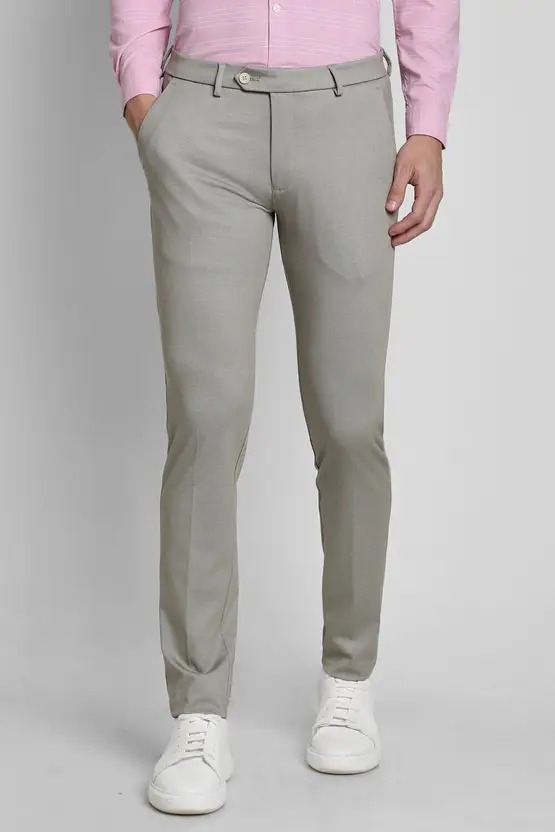 Men Slim Fit Grey Polyester Trousers