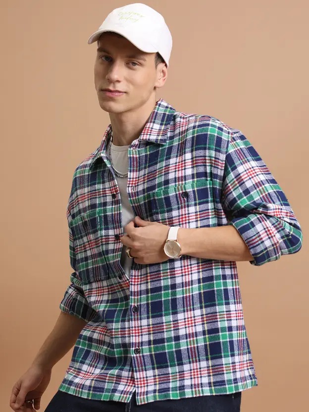 Men Relaxed Fit Fit Checkered Spread Collar Casual Shirt