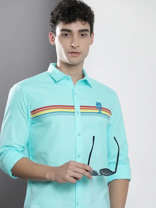 Men Slim Fit Striped Spread Collar Casual Shirt